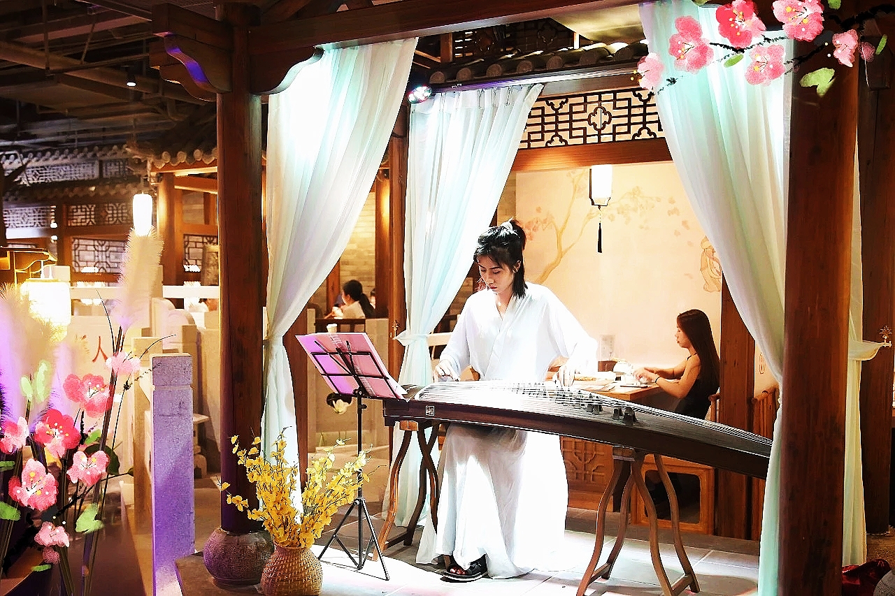 宛若一秒穿越宋朝的百年小灶,在装潢上深得人心,将现代投影与古代建筑特色融合,以“花溪寻隐”图为主题,打造了一个古代的江湖食苑。