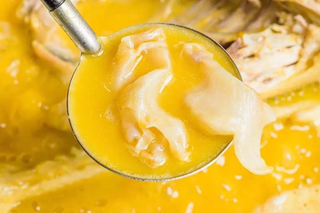 和郭靖大侠集百家武学一般,臻府的港式鲜捞一锅熬起山珍海味与此有异曲同工之妙。六种锅底可选,深海花胶鸡作为“山珍”那可是一绝,选用清远走地鸡加深海花胶慢火熬制十小时,鸡汤浓郁鲜厚,营养满分。