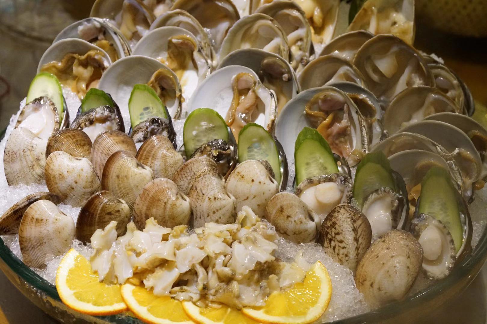 深海贝类拼盘里有北极贝、大香螺、油蛤、小象蚌、白玉贝、鲍鱼等等,均是优选上等贝类拼合而成,贝壳鲜甜,加在锅底里使汤底更加鲜美浓郁。